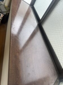 白濁が除去され、艶が戻った窓際カウンターの施工後写真