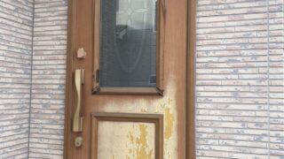 リペア(傷の修復) 劣化した玄関ドアを交換せず再生|下地処理から仕上げまでのリペア 劣化して表面が剥がれた玄関ドアを交換せずにリペアで再生。下地処理からシート施工、小口のシリコン仕上げまで行った施工事例です 2025.11.20 リペア(傷の修復)